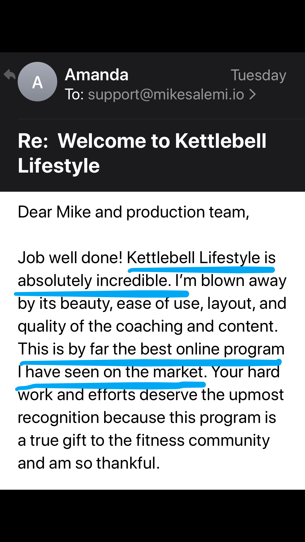 "The kettlebell Lifestyle program is by far the best program I've ever done."